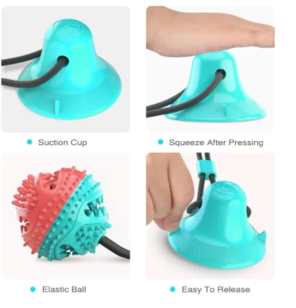 • Super-strong suction cups that can be attached to any clean, flat surface, which means your dog can pull and chew at will, without losing grip.