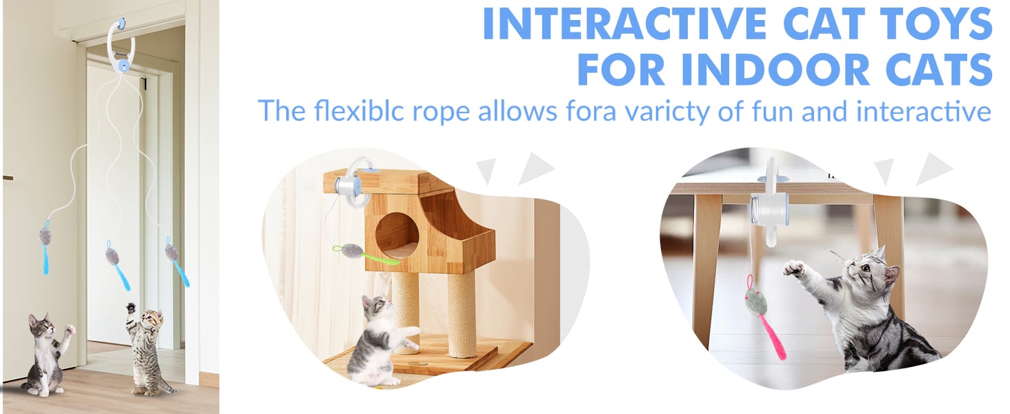 Our interactive cat toy comes with two adjustable ropes and three colorful feather mice crafted from durable, abrasion-resistant materials. Even if your cat bites off the rope, you can still tie it back on for longer life. The longest rope extends to 78 inches (2 meters) and can be customized to your specific needs.