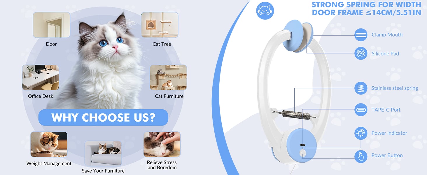 The cat toy can be effortlessly clipped or hung in various locations, including doors, arches, cat furniture, coffee tables, or desks. With an upgraded strong spring and non-slip pad, it stays securely in place even during vigorous play. This versatile toy makes an excellent gift for pet owners looking to keep their kittens entertained.