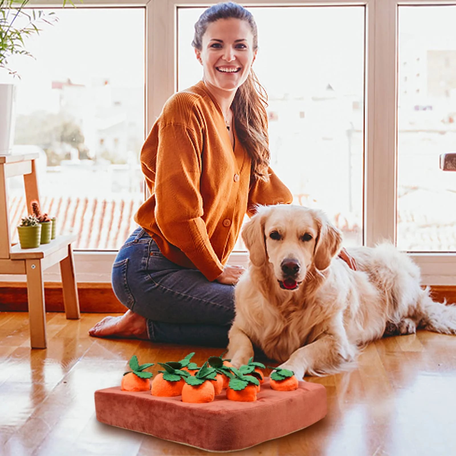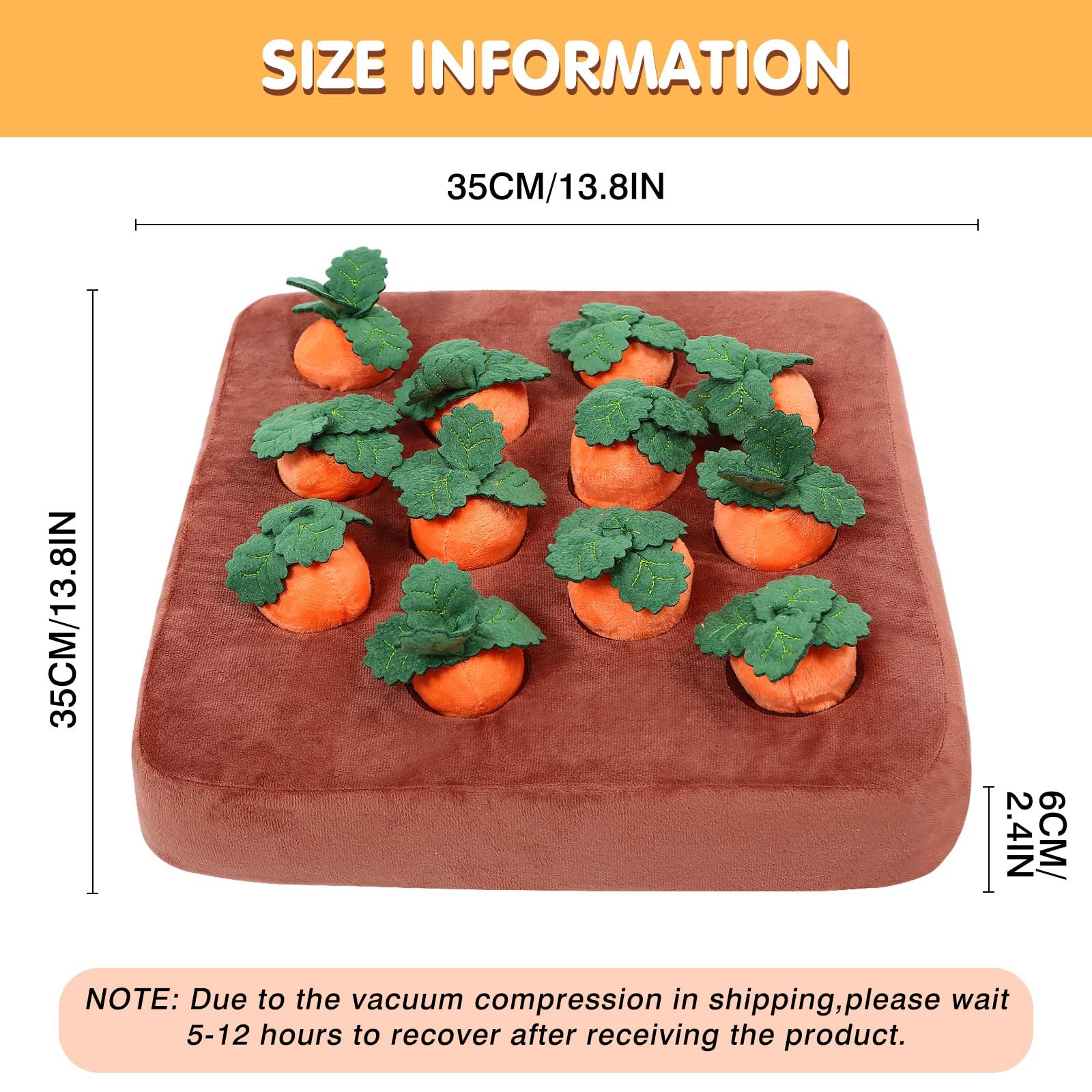 🐶🥕【Keep Your Pet Entertained】The interactive carrot farm prevents your dog from getting bored by keeping them busy for hours. It is an indoor interactive toy that peaks your dog’s curiosity. You can bury their favorite treats under the carrots and watch as they work to sniff and dig them out.Unlimited hours of fun for your dog to play hide and seek!