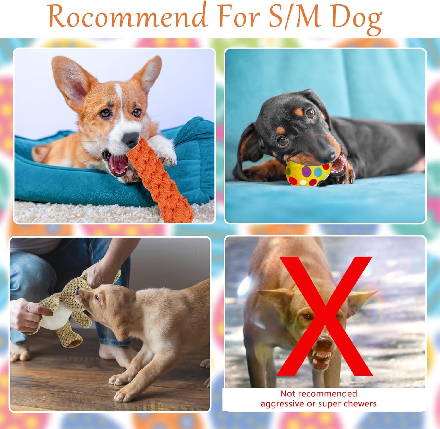 Each toy contains a squeaker that makes playful sounds when bitten or squeezed. The noise instantly grabs your dog’s attention and keeps them engaged.