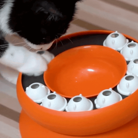 Make mealtime a brain game with the  Cat Puzzle Slow Feeder Bowl. Designed with nine rotating tower-shaped food compartments and an ergonomic 15° tilt, this multifunctional feeder slows down your cat’s eating while protecting their posture and neck.