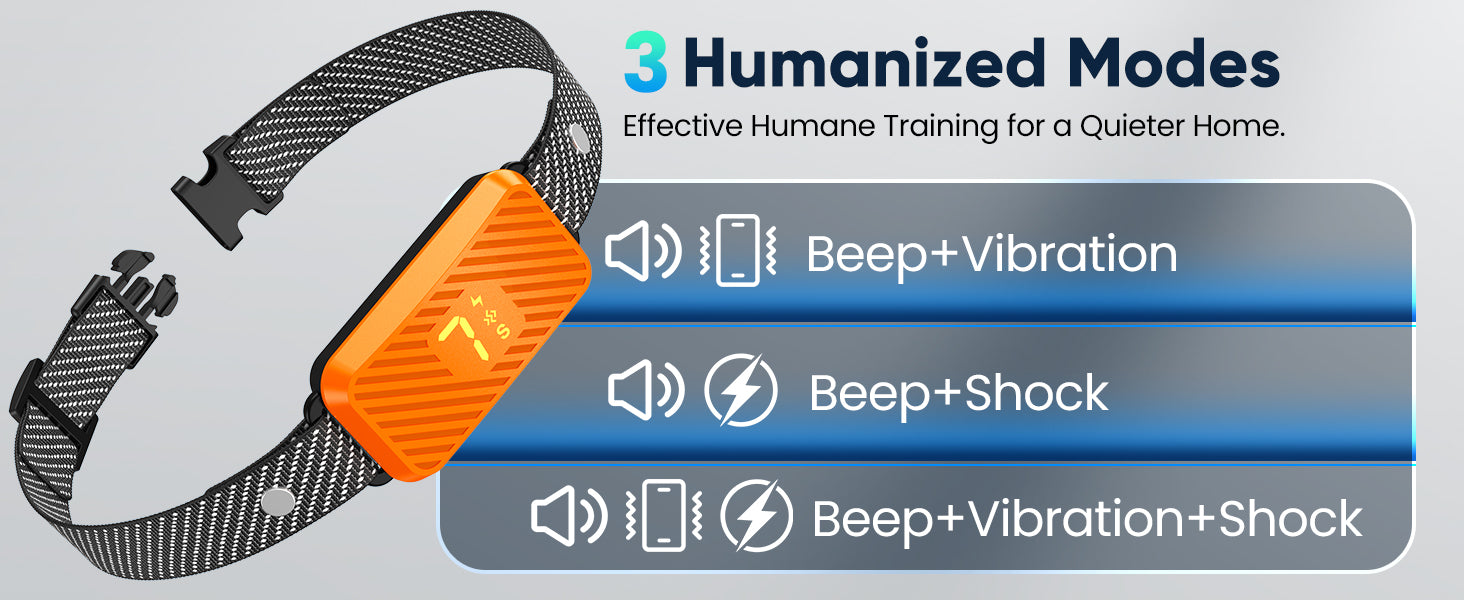 This smart bark collar helps reduce excessive barking using advanced dual-sensor detection that recognizes both sound and throat vibration. It minimizes false triggers from other dogs or background noise, making training more accurate and effective.