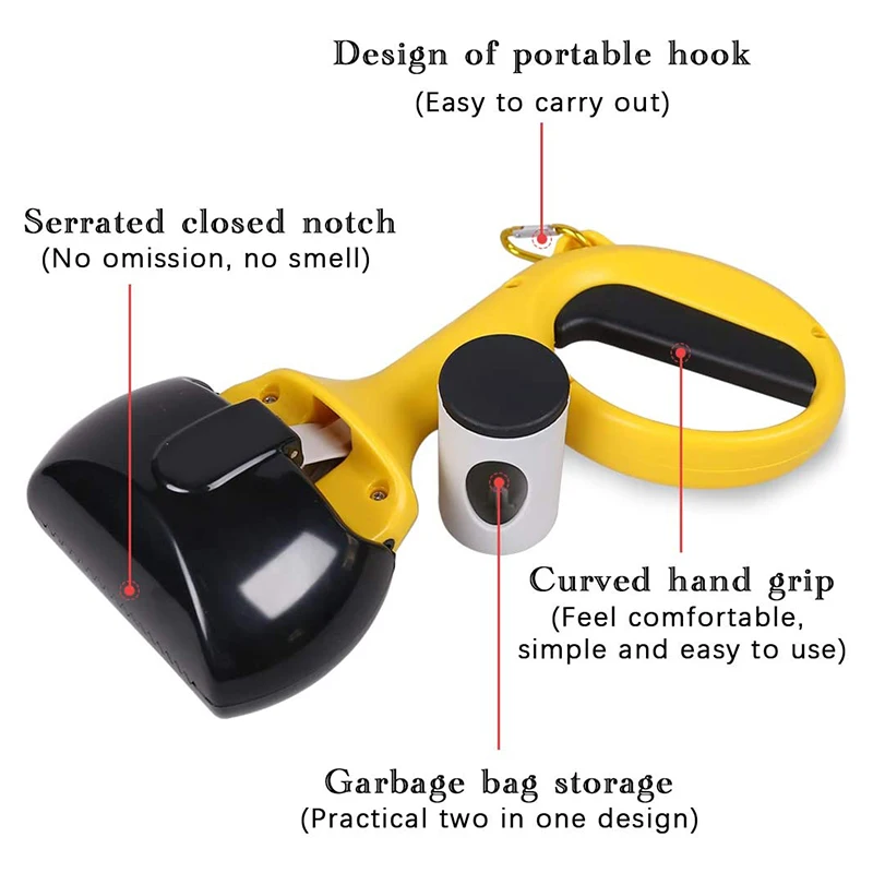 Remove dog poop and waste from any surface without using your hands. Simply cover scoop jaws with plastic bag and avoid the sensation of picking up any animal waste.